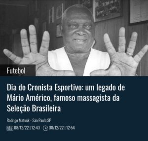 Rodrigo Matuck – São Paulo,SP Nesta quinta-feira é comemorado o Dia do Cronista Esportiva. A celebração é fruto de uma luta “comprada” por Mário Américo, massagista da Seleção Brasileira e vereador de São Paulo, no final da década de..