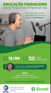 A ACEESP, em conjunto com o Sicredi, parceiro da Associação dos Cronistas Esportivos do Estado de São Paulo no Troféu entregue aos melhores cronistas do ano, estará promovendo na próxima segunda-feira (12/9), um workshop sobre educação financeira para pequenos..