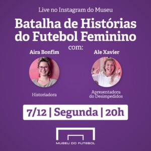 Nesta segunda (07/12) às 20h diversas curiosidades sobre a modalidade com Ale Xavier, do Desimpedidos, e a pesquisadora Aira Bonfim Batalha de Histórias sobre Futebol Feminino é o tema da próxima live que o Museu do Futebol realiza nesta segunda..